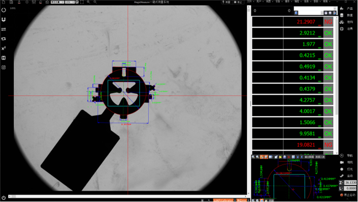 1.自動圖像配準功能,無需定位工件,無需夾具,產品隨便擺放,實現自動識別測量;可同時識別多個測量工件并進行測量,輸出結果。
