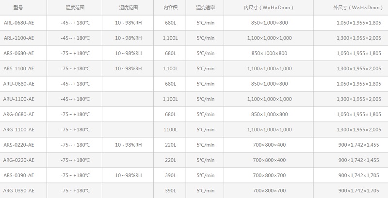 溫度范圍:-75~+180℃,濕度溫度:10~98%RH。可以進(jìn)行4,500W大負(fù)荷溫度試驗(yàn)。溫變速率可達(dá)3℃/分以上。