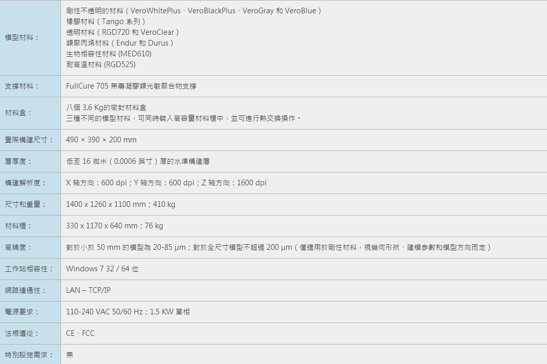 Connex3 3D列印機內建三重噴射技術、提供數百種數位材料和大型構建託盤尺寸,讓您在進行複雜的產品開發時更佳的便利。