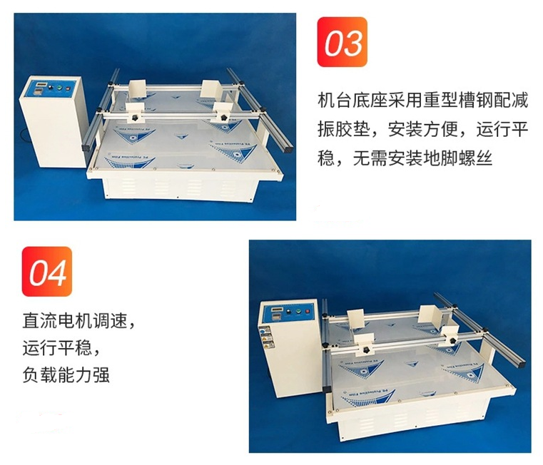 本機適用于玩具、電子、家具、禮品、陶瓷、包裝等產品進行模擬運輸測試,符合美國及歐洲運輸標準