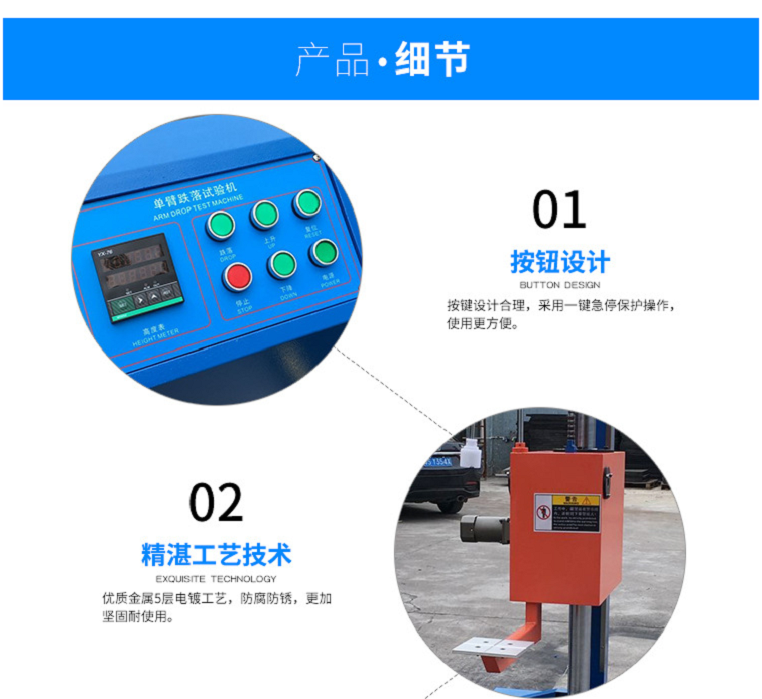 單臂跌落試驗機本機專用于測試產(chǎn)品包裝受到墜落之受損情況,及評估運輸搬運過程時耐沖擊強度