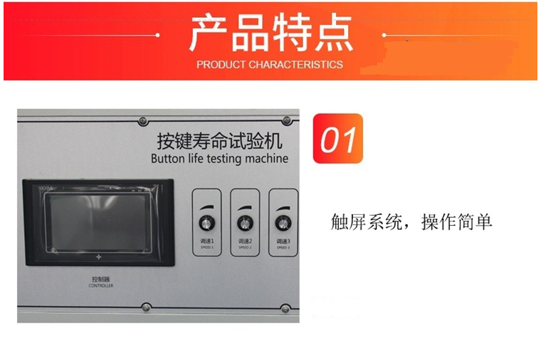 1、箱體采用靜電噴漆處理,工作臺面等采用鋁噴砂處理,美觀大方,整機設計合理結構緊固,運行穩定、安全、準確。2、根據各類按鍵產品測試制造,試驗夾具、行程可調,應用廣泛。